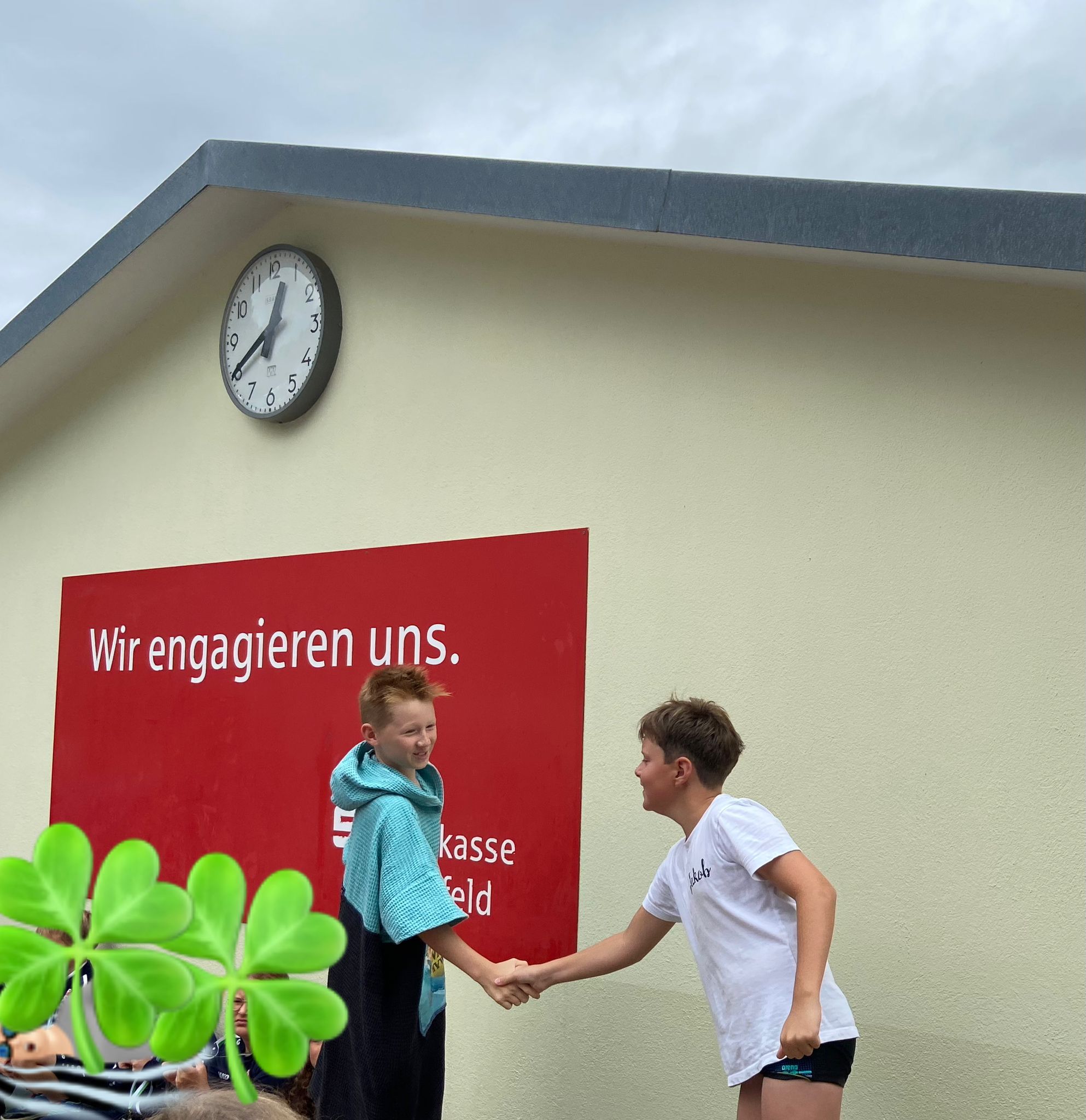 Zum Abschluss standen die 100 m Freistil an, alle Aktiven erreichten noch einmal ihre Bestzeit: Hier glänzte Matz mit stark verbessertem Beinschlag und Gabriel lieferte sich ein packendes Duell mit Janne, welches er gewann, weil Janne seine Brille nach dem Start verlor. Gabriel freute sich darüber, dass er Schnellster im Team war und Janne sammelte wertvolle Erfahrung. Das abschließende Rennen der drei Mädchen Hannah, Lia und Lena gewann Erstere souverän, während Lena den besten Start im Feld zeigte. Alles in allem also ein erfolgreiches Wochenende.