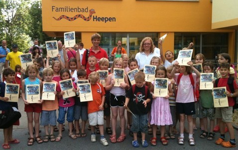 Die jüngste Talentisgruppe aus Heepen feierte am Donnerstag im Tierpark Olderdissen erfolgreich den Abschluss des ersten Trainingsjahres. Nach einer von Janine Müller optimal organisierten Rally durch den Tierpark fanden sich alle zur Siegerehrung des dritten Trimestertests ein. Bei diesem konnten alle Aktiven ihr Fortschritte im Bereich des Rücken- und Kraulschwimmens beweisen. Medaillen und Pokale konnten Jannik Gehrmann, Luca Terstesse, Nele Genett, Julia Borecki, Zoe Triantafillou, Maksimilian Pöschel, Josia Beshay, Justin Undrat und Philipp Eichwald mit nach Hause nehmen. Die Fortschritte speziell der ersten Zehn waren für die Trainer sehr erfreulich, so dass alle optimistisch in die neue Saison schauen. In den kommenden Woche gibt es neben dem normalen Training noch eine Spielstunde und am Ende eine Rückmeldung durch die Trainer an die Aktiven zu den bisherigen Ergebnissen (eine Art Zeugnis), ehe alle in die wohlverdienten Sommerferien aufbrechen.