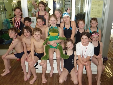 Die beiden Highlights aus Trainersicht waren die 50m Freistil von Pauline Wullenkord (12 Jahre) in 0:32,7 min mit denen sie sich sogar für den Zwischenlauf in der offenen Klasse qualifizierte und die 1:15,0 min über die doppelte Distanz mit denen Katharina Storz (12 Jahre) dank toller Tauphasen die Goldmedaille erschwamm. Zum Abschluss der Ausbildung gibt es nun noch den letzten Trimestertest; hier werden alle Technikkriterien der vier Schwimmarten und der Wenden zusammen mit der Ausdauer abgeprüft. Danach gibt's dann hoffentlich noch eine schöne Abschlussfeier.