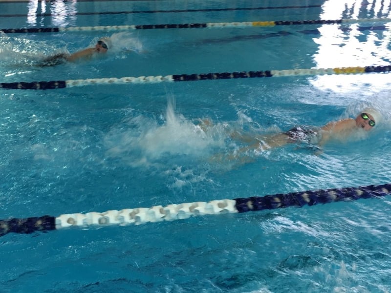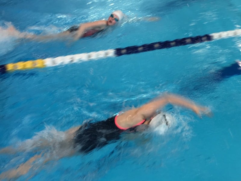 Gleich zu Beginn gab es spannende Rennen über 200 m Freistil: Da die Gruppe bisher kein reines Ausdauertraining absolviert hatte, ging es darum, mit guter Technik und optimaler Renneinteilung zu performen. Diese Aufgabe trauten die Trainer dem Sextett Kira Sohrmann, Lena Krug, Leonie Haering, David Lange, David Munteanu und Onur Yazman zu. Krug löste diese Aufgabe sowohl technisch als auch von der Einteilung am besten. Nach optimalen Start lag sie gleich vorne und gab genau diesen Vorsprung bis ins Ziel nicht wieder her. Beeindruckend war der Technikwechsel von der Sprinttechnik zur Mittelstreckentechnik, den sie perfekt umsetzte. Zusammen mit Sohrmann glänzte sie auch durch sieben gute Wenden, die jeweils mit guten Abstößen immer wieder das Renntempo erhöhten. Schlussendlich siegte Krug in 3:21,7 min vor Sohrmann und Haering, die mit guter Schwimmtechnik überzeugte (jeweils 3:24,0 min). Die schnellste Zeit erreichte Lange in 3:15,5 min dank der besten Ausdauer, im Bereich der Wenden ist aber noch Potential. Munteanu begann sehr stark und technisch fast optimal, hat aber für diese lange Strecke noch nicht genug Ausdauer. Trotzdem standen am Ende gute 3:21,3 min zu buche. Der sechste im Bunde (Yazman) zeigte die beste Einteilung und debütierte damit ebenfalls erfolgreich auf den 200 m Freistil, vor denen alle sechs ziemlichen Respekt hatten.