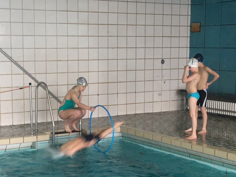 Da es heutzutage mehr denn je auf einen guten Start im Wettkampf ankommt, hatten die Trainer einige zusätzliche Wochenendeinheiten geplant. Es wurden dabei im letzten Halbjahr viele Verbesserungen im Bereich Auftaktbewegung, Absprung, Flugphase und Eintauchphase erreicht. Obwohl es sich beim Starsprung um eine extrem komplexe Angelegenheit in ganz kurzer Zeit handelt, waren bereits beim letzten Wettkampf in Hillegossen gute Ansätze zu sehen und weitere werden hoffentlich nach den Sommerferien folgen. An diesem Wochenende erreichten die Aktiven vor allem Verbesserungen im Bereich der Eintauchphase.