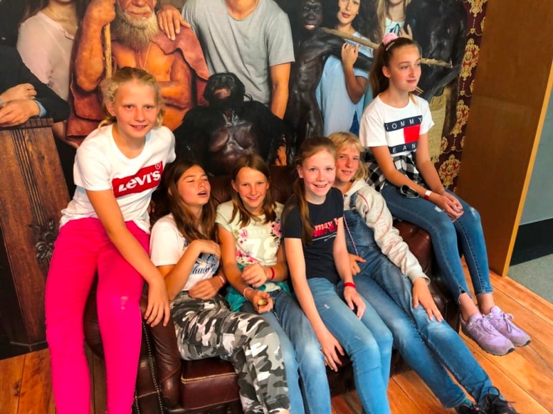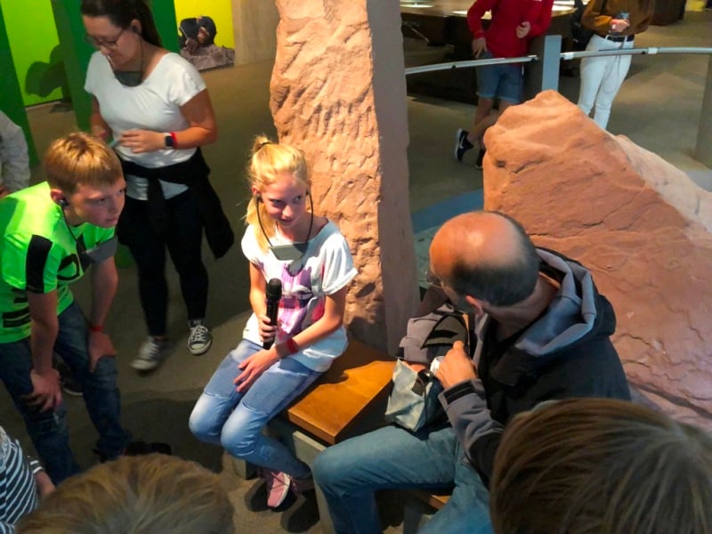 Die Reise in die Vergangenheit brachte im Neanderthal-Museum viele neue Erkenntnisse. Da der Führer spielerisch die Dinge erklärte, wird hoffentlich Einiges hängen geblieben sein. Neben vielen Fragen / Antworten gab es ein Interview von Sinja und am Ende die Verwandlung von David und Sinja in „Neanderthaler“, wenn auch nur virtuell auf einem Foto. In der kommenden Woche gibt es noch zwei Trainingseinheiten, danach haben alle die verdienten Sommerferien.