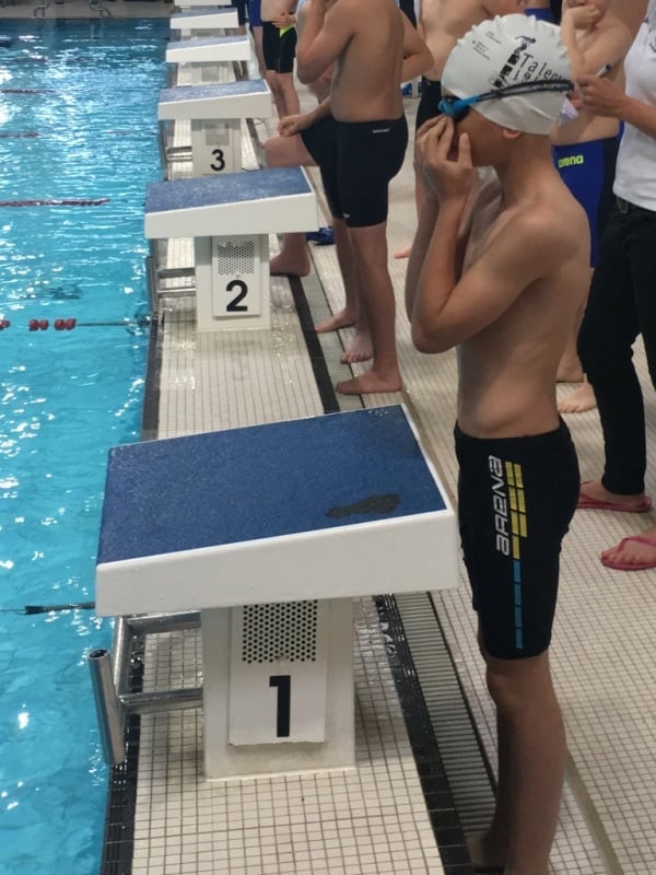Am vergangenen Sonntag gab es für die Talentis-Gruppe aus Brackwede eine Extraeinheit im Almbad. In drei Kleingruppen à 6 Schwimmer übten alle Aktiven fleißig den Startsprung. Damit der Wettkampf gleich an der Spitze des Feldes beginnt, wird der Start immer wichtiger. Da die Ausführung ziemlich komplex ist, hatten die Trainer zuerst einen Kurzfilm vorbereitet, damit die Kinder sehen konnten, wie die Weltspitze das optimal ausführt. Danach ging’s in die Übungsphase. Mit Hilfe einer Übungsreihe wurden die Startposition, die Auftaktbewegung, der Absprung, die Körpersteckung , der „T-Rex“ und die Eintauchphase geübt. Mittels Videoanalyse konnten die Aktiven sofort sehen, was sie schon richtiggemacht haben.