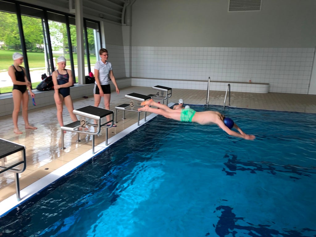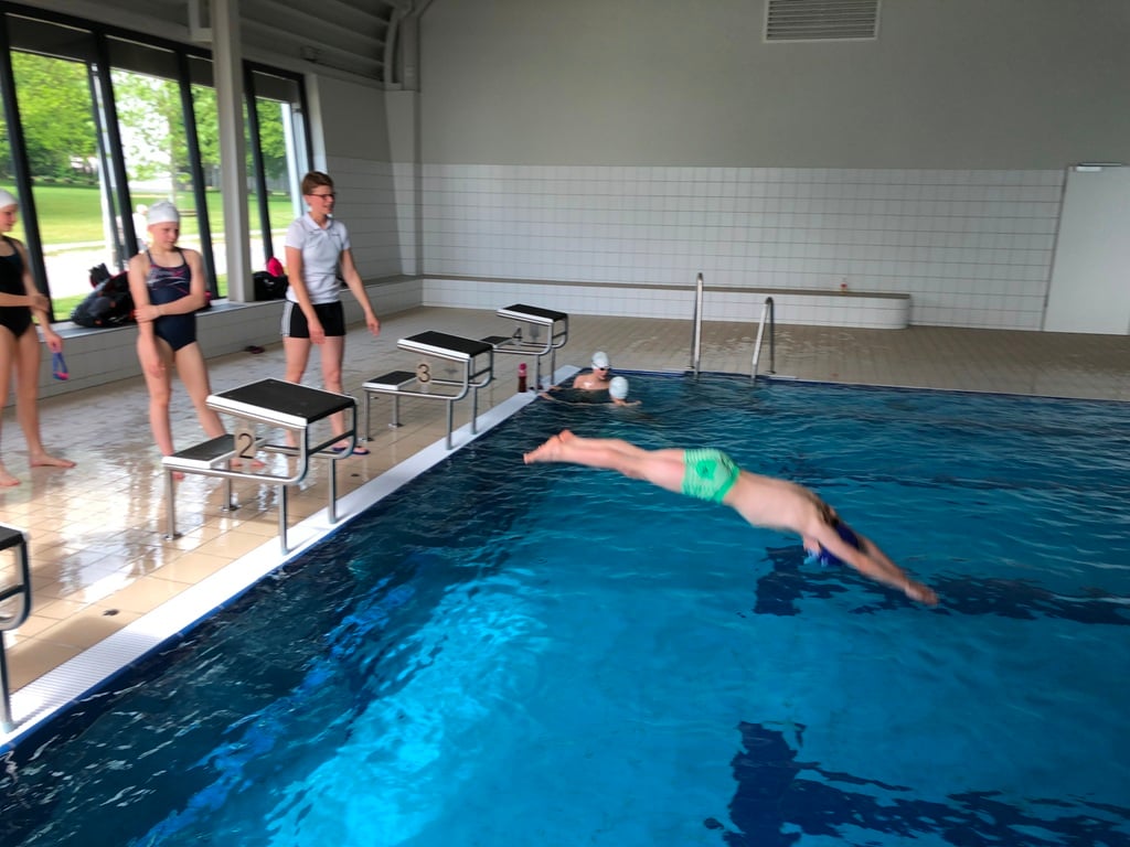 Zum ersten Mal haben wir in den Ferien Training für die Daheimgebliebenen angeboten. Die heutige Einheit hatte den Schwerpunkt Rückenstart und wurde gut angenommen. Trainerin Celine Ciupek hatte einige effektive Übungen vorbereitet und damit den Rückenstart der Aktiven verbessert. Bemerkenswert war vor allem die Motivation der Athleten und deren Mut beim Rückwärtssprung.