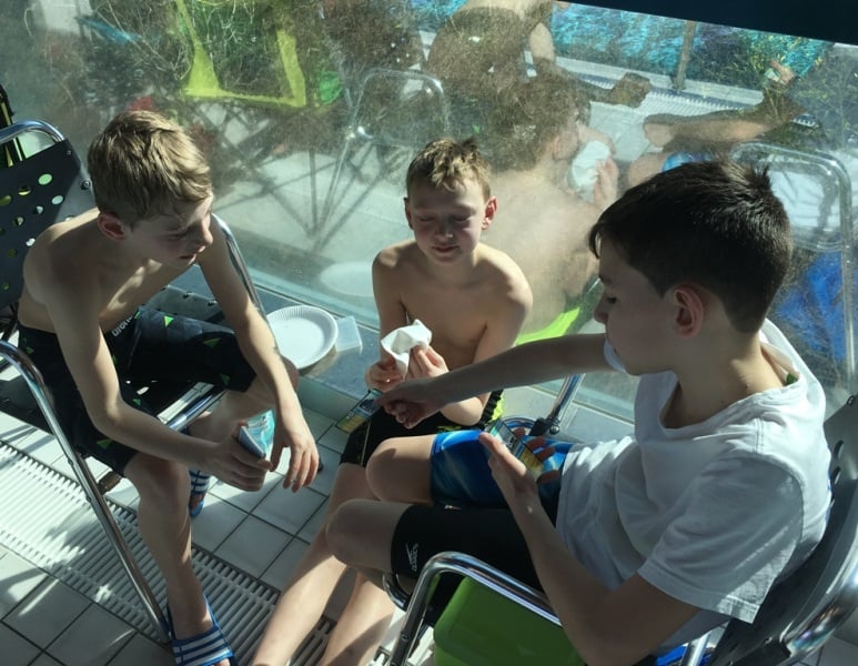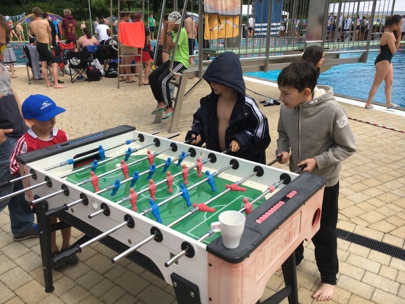 An diesem Wochenende hatten jedenfalls alle Spaß, auch bedingt durch das tolle Wetter. Die Wettkampfpausen wurden genutzt, die Highlights des Freibades zu erkunden (Rutschen, Kicker, usw.), sodass der Wettkampf insgesamt recht kurzweilig war.