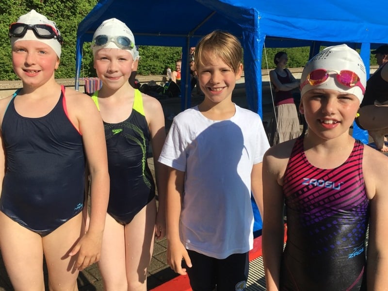 Den Auftakt machte ein Quartett über 100 m Rücken: Nicole Kirsch, Kira Sohrmann, Lena Krug und Jonah Schupp (jeweils 9 Jahre) erreichten trotz diverser freibadbedingter Orientierungsschwierigkeiten tolle Platzierungen. Alle unterboten die Zweiminutengrenze deutlich und kamen auf der langen Bahn, trotz fehlender Wenden, gut zurecht. Am Ende reichte es für Nicole Kirsch sogar zu einer Medaille, während die beiden anderen knapp dahinter einliefen. Jonah Schupp verschenkte die sichere Medaille, weil er die Wende nicht erwarten konnte und sich kurz vorher in die Bauchlage begab.