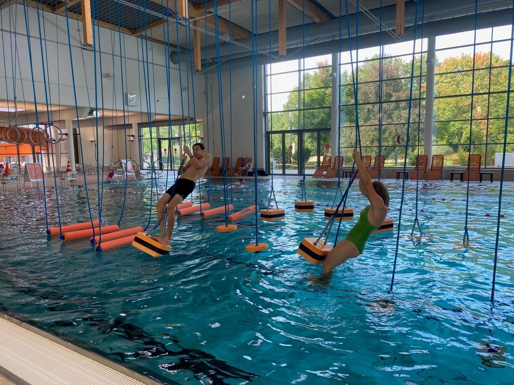 Die Freizeitaktion nach dem Test führte die Gruppe diesmal nach Osnabrück ins Nette-Bad. Coronabedingt war das die beste Option. Das eigentlich geplante Wasser-Ski-fahren, war leider nicht mehr möglich. Im Nette-Bad gab es den Ninja-Cross zu bewältigen. Hier kam es auf Kraft und Geschicklichkeit an. Weit vor allem anderen konnte Ina Köllemann den Parcour abschließen. Danach wurde auf den Rutschen mit verschiedenen Schwierigkeitsgraden mit viel Spaß gerutscht.