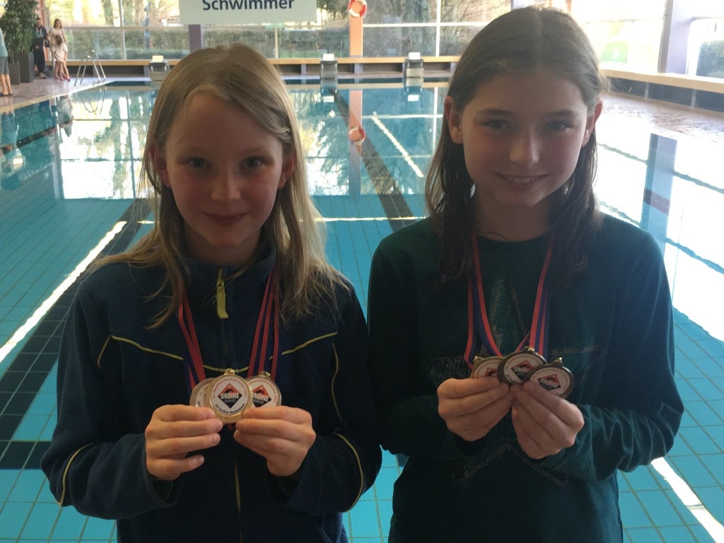Der Sonntag brachte dann für zwei Duos die wirklich langen Strecken: Ina Köllemann (13 Jahre) überzeugte mit einer neuen Bestzeit von 13:16 min über 800 m Freistil - vor allem dank guter Einteilung und schöner Technik. Leider brachte Sie sich mit einem Frühstart um den Lohn der Anstrengung und die ansonsten sichere Medaille. Gehörigen Respekt hatte Kira Sohrmann vor ihrem ersten 800 m-Freistilrennen, daher schwamm sie extrem progressiv. Mit 11:51 min sicherte sich wieder eine Medaille, die Renneinteilung verspricht aber in naher Zukunft noch deutlich schnellere Zeiten. Trotzdem war es mit drei Bestzeiten und drei Medaillen ein sehr guter Jahresauftakt für sie.