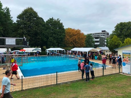 Der Einmarsch aller 650 Aktiven um den Pool in der Mittagspause sorgte für ein unvergessliches Erlebnis bei den Aktiven. Begleitet wurde das der Einmarsch von einer Trommel-Band und sorgte bei schönstem Sonnenschein für zusätzliche Motivation. In den nächsten Wochen geht das Training hoffentlich erfolgreich weiter und in zwei Wochen geht’s in Hillegossen wieder um Medaillen.