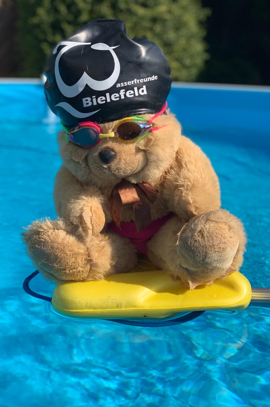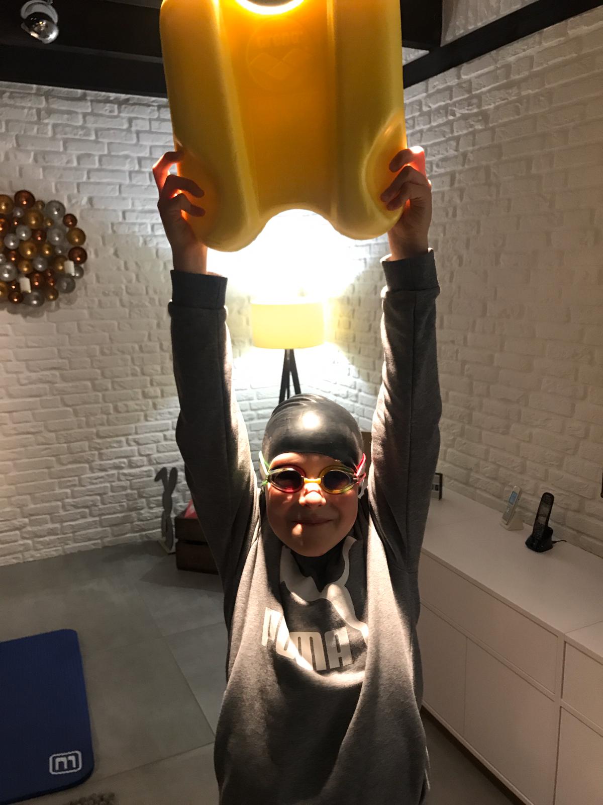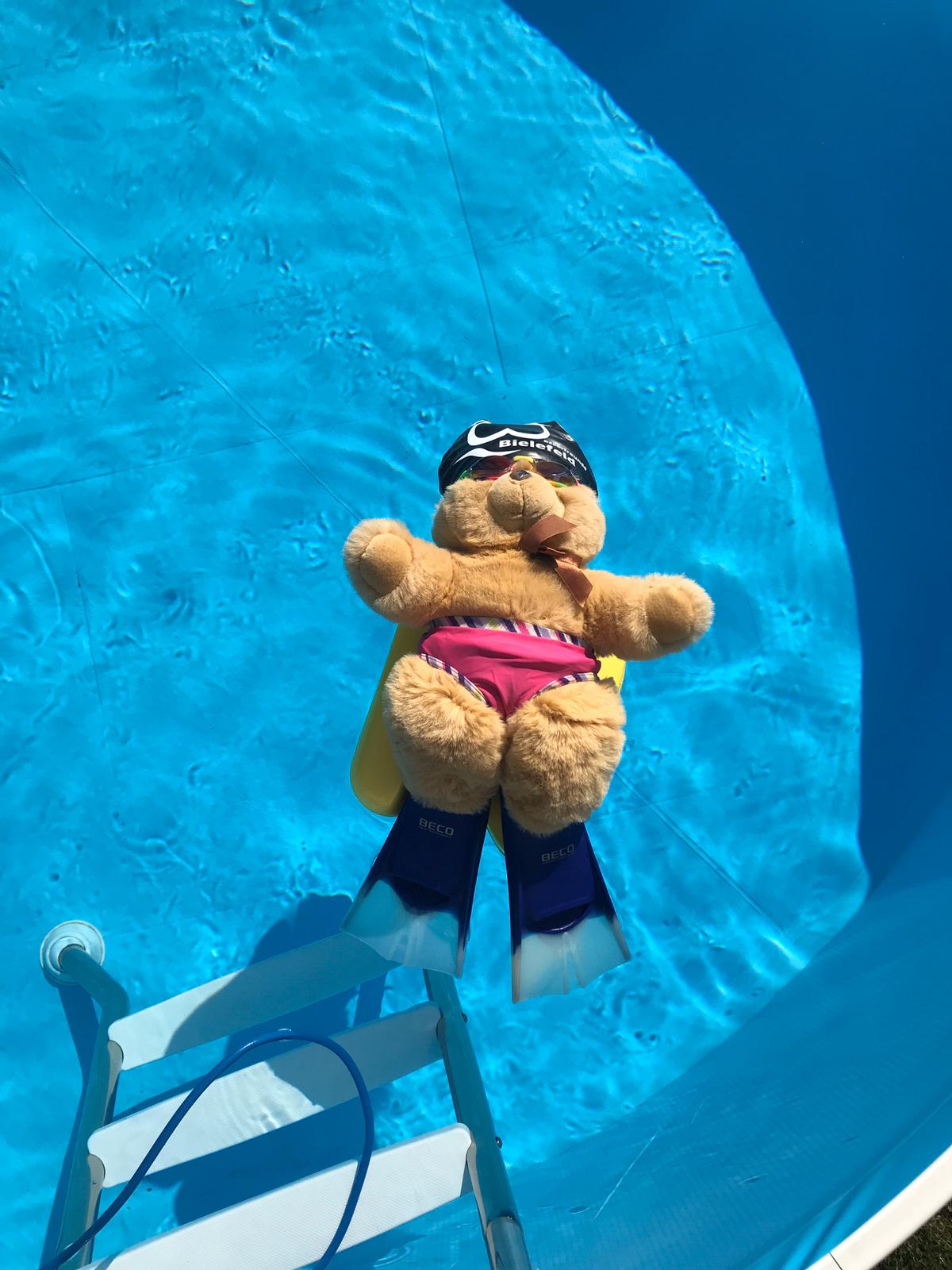 Nach zwei Wochen Zwangspause beginnt für Talentis Mitte im März das Training@home. Sehr zur Freude mancher Elternteile, die ihre sportbegeisterten, bewegungsfreudigen Kinder zu Hause beschäftigen müssen, werden seitdem regelmäßig Videos aus dem Trainer-HomeOffice geschickt. Dabei wechseln sich Mini-Zirkel, Tages-Challenges, Trocken-Schwimmübungen und verschiedene Spiele ab. Da es für das Schwimmbad bekanntlich außer dem Pool im Garten keine alternativen Trainingsstätten gibt, stellt es eine Herausforderung dar, Übungen zu entwickeln, die zu Hause ohne den Einsatz von besonderen Materialien durchgeführt werden können. Damit die geliebten Schwimmutensilien jedoch nicht ganz in Vergessenheit geraten, werden auch diese ab und zu wieder entstaubt und für das Homeworkout tauglich gemacht. Auf beiden Seiten ist dabei viel Kreativität gefragt und auch der Spaß soll nicht zu kurz kommen. Bei der Durchführung und der Dokumentation der Übungen kommt die ganze Familie zum Einsatz. Kleine Geschwister setzen sich als Gegengewicht auf die Beine oder üben Choreographien ein, der Papa läuft als Motivator nebenher, Mamas sichern die Turnübungen ab und irgendwer muss das Ganze ja dann auch noch mit dem Smartphone festhalten. Die Fotos und Videos werden an die Trainer zurückgeschickt. So wird der Trainingsfortschritt dokumentiert und nebenbei haben die Trainer auch mal wieder etwas zu lachen. Demnächst wird es als Alternative zum Trimestertest eine kleine Olympiade für zuhause geben. Durch vieles kann also der Trainingsalltag ersetzt werden. Die Freunde, das Wasser und das Auspowern fehlen aber allen sehr.